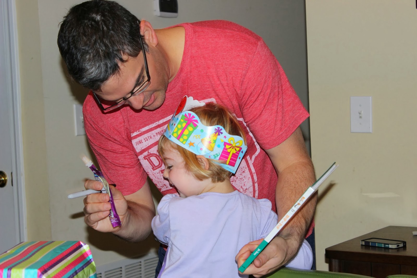 We started the day with some gifts from us, Grandma & Grandpa. She was tickled to get a bunch of Jake & the Neverland Pirates accessories & outfit, among a couple books & clothing. Cassidy, of course, had to help!
